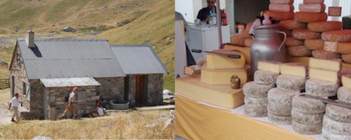 Much of the cheese made in the Ossau Valley is produced in the mountains while the sheep are grazing in the late spring and summer months. The berger (bergère if female), shepherd, will stay with the sheep for up to three months without a break. During that time the berger will live in the mountain huts, bergerie, and make the cheese on the premises.